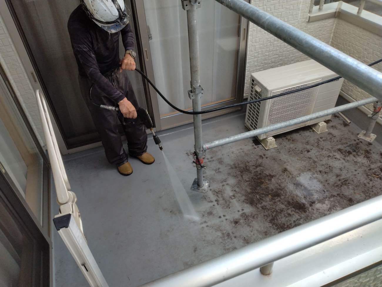 1.作業前の養生:窓や換気口など、水が入ってはいけない部分をしっかり保護します。