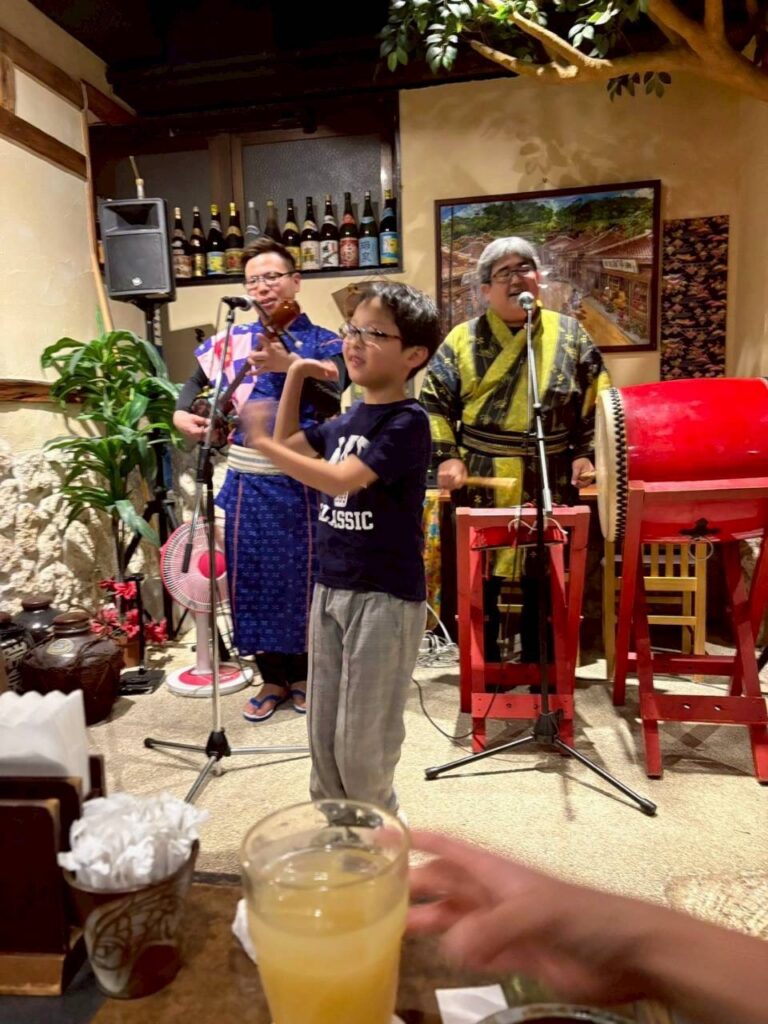 夕食は国際通りの「沖縄民謡居酒屋あんがま」にて三線の生演奏を聴きながら沖縄ならではの料理を味わいました🍜🍻