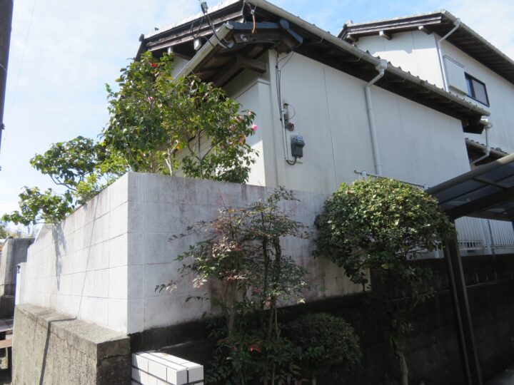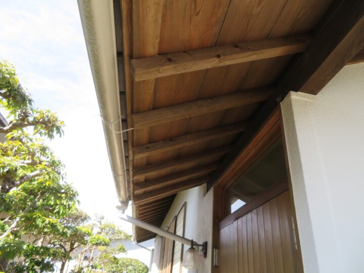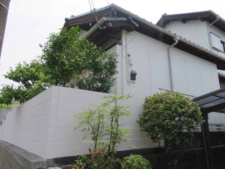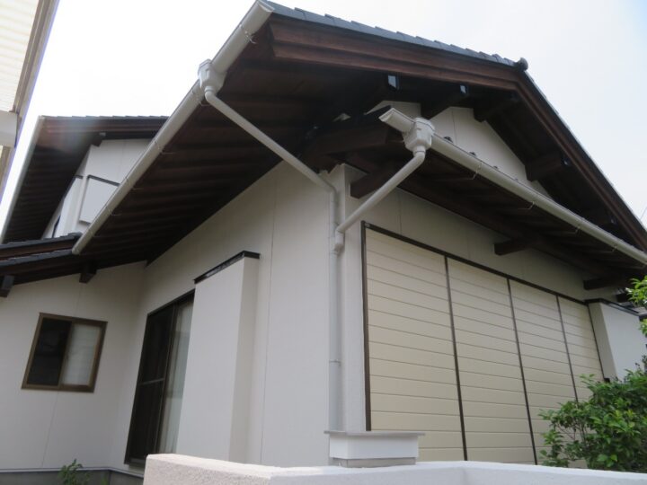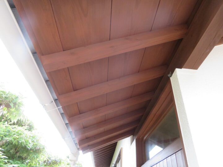 | 使用材料 | オリエンタル塗料工業/ニューマイルド優雅タフグロスコート仕上げ(屋根)/ダークグレー 関西ペイント/アレスダイナミックトップ(外壁)/KP-221 大阪ガスケミカル/キシラデコールアクオステージ(木部)/チーク 関西ペイント/パワーMシリコンEX(付帯部)/P22-80D インターナショナルペイント/IPヨウヘキコート(塀)/KP-221 |