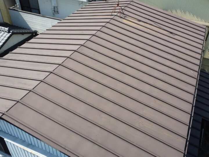 | 使用材料 | 関西ペイント/アレスダイナミックルーフ(屋根)/コーヒーブラウン 関西ペイント/アレスダイナミックTOPマイルド2液(外壁)/KP-70 関西ペイント/パワーMシリコンEX(付帯部)/PN-90 |