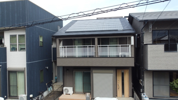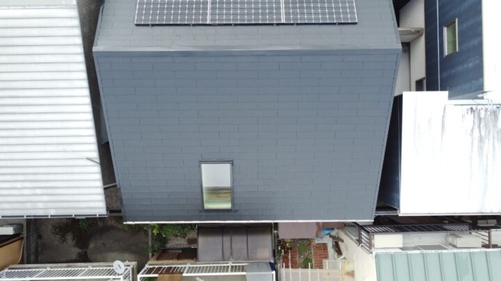 | 使用材料 | オリエンタル塗料工業/ニューマイルド優雅タフグロスコート仕上げ(屋根)/ダークグレー 日本ペイント/グランセラトップ1液水性(外壁)/P19-40B 関西ペイント/アレスダイナミックノキエ(軒天)/P19-30B オート化学工業/オートンイクシード(シーリング材) |