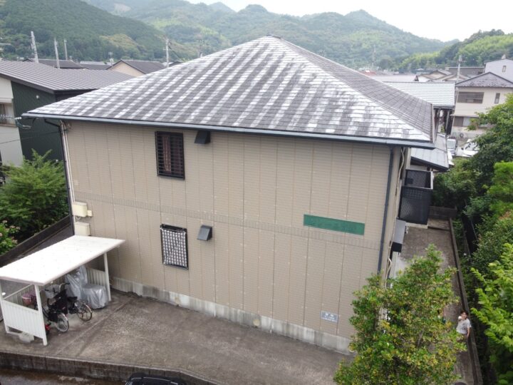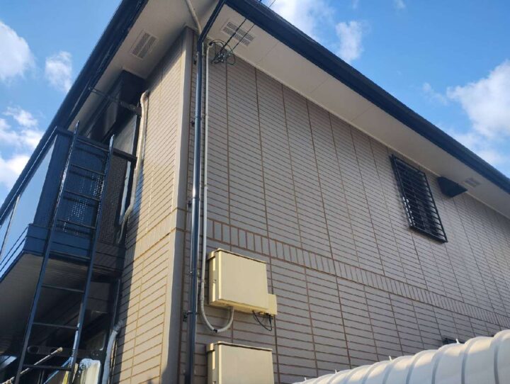 高知市 神田 sアパート 屋根塗装 外壁塗装🏠技術力が光ります💪ダブルトーン工法でタイル調サイディングを塗装しました(^^♪