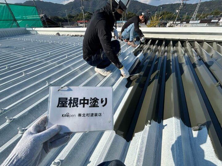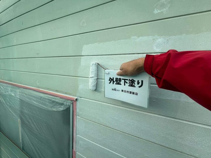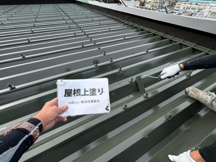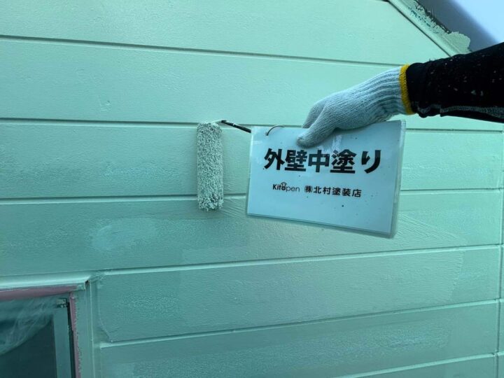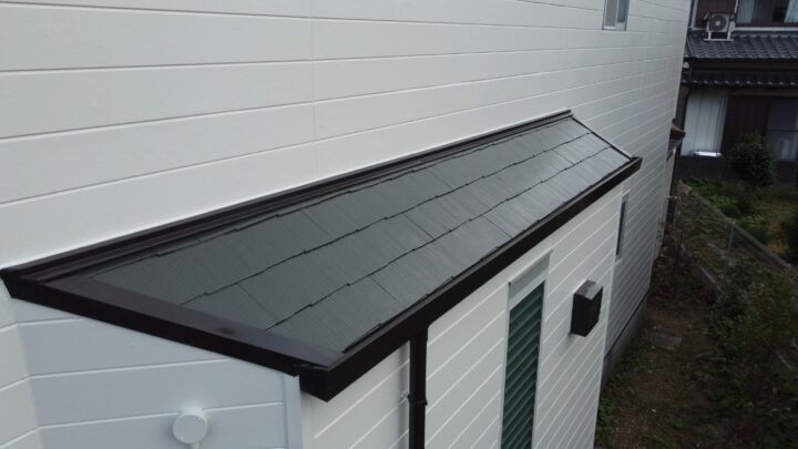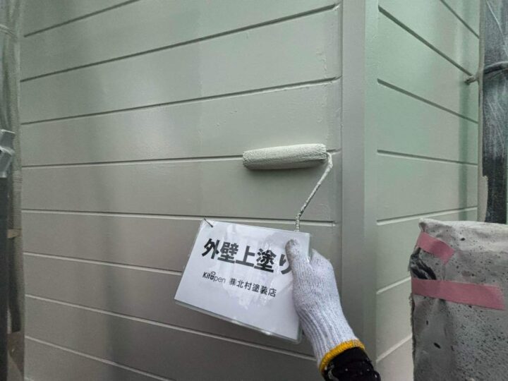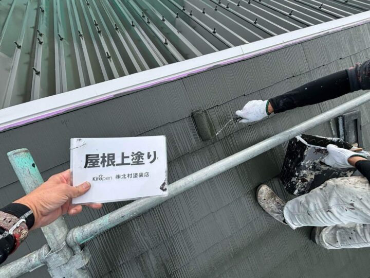| 使用材料 | オリエンタル塗料工業/ニューマイルド優雅タフグロスコート仕上げ(屋根)/オールドグリーン 日本ペイント/グランセラトップ1液水性(外壁)/PN-77・P19-20B・ND-102 関西ペイント/アレスダイナミックノキエ(軒天)/PN-90 |