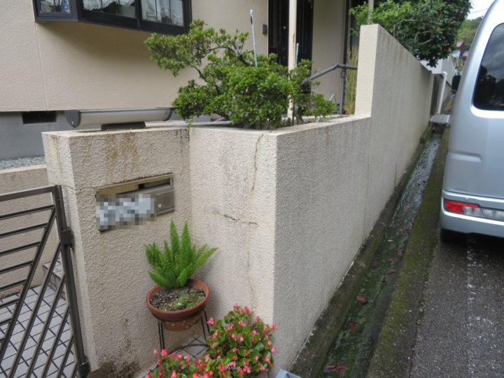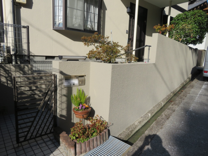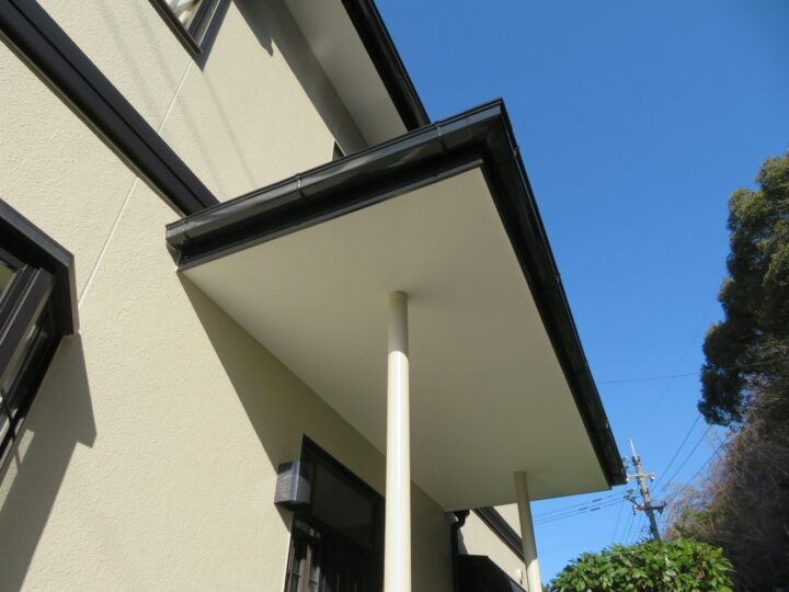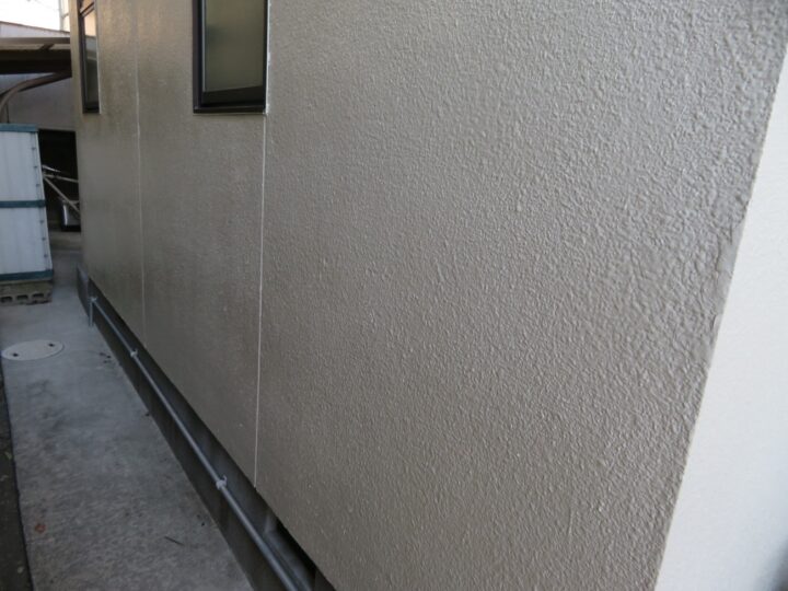 | 使用材料 | 日本ペイント/グランセラベスト2液ファイン(屋根)/ディープグレー 日本ペイント/パーフェクトトップSi(外壁)/P22-80C 日本ペイント/ケンエースG-Ⅱ(軒天)/LN-90 日本ペイント/ハイポンダブルガードSi(付帯部)/PN-20 インターナショナルペイント/IPヨウヘキコート(塀)/P22-60C オート化学工業/オートンイクシード(シーリング材) |