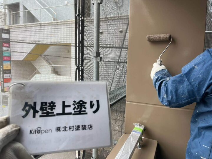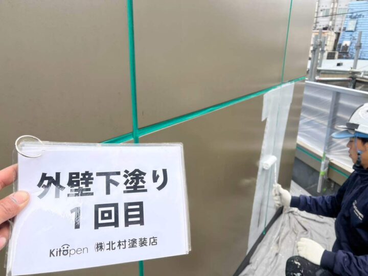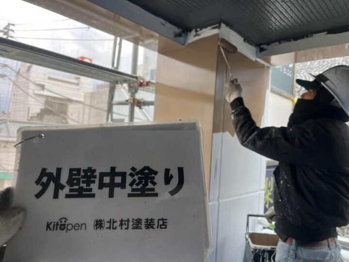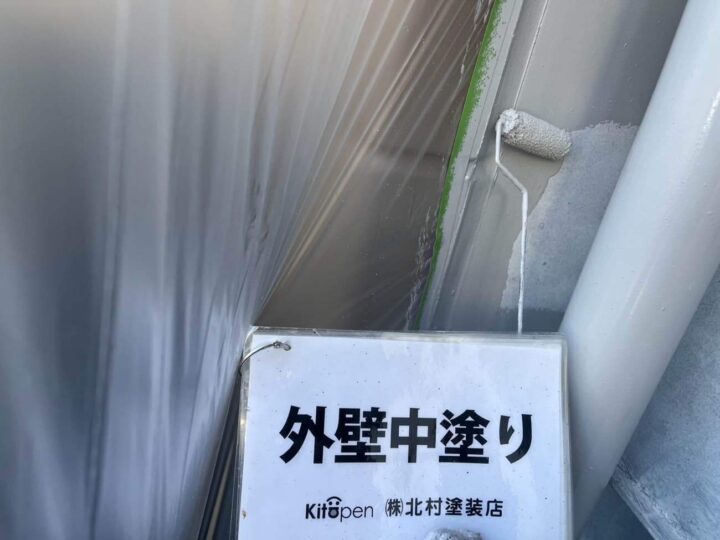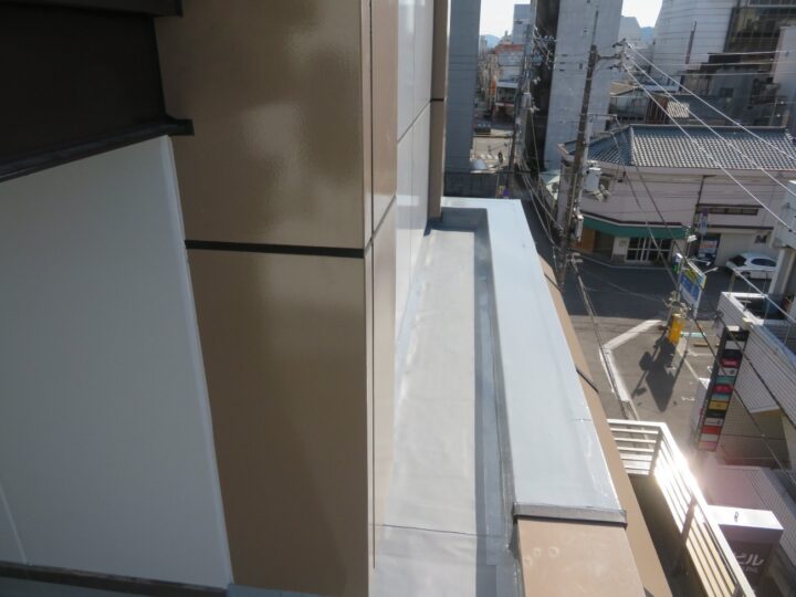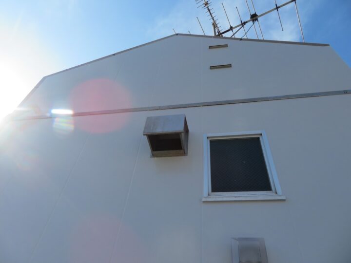 | 使用材料 | 関西ペイント/アレスダイナミックトップマイルド2液(外壁)/P19-50D・PN-75 関西ペイント/アレスセラマイルド(軒天)/PN-40 関西ペイント/アレスダイナミックトップマイルド2液(付帯部)/P15-30B タキロンマテックス/タキストロン QA983(防滑シート) 田島ルーフィング/ビュートップU-815(塩ビシート防水) |